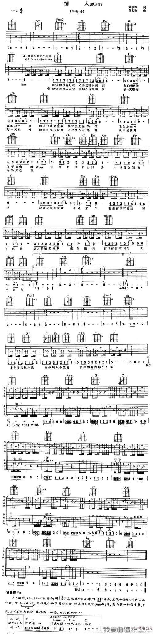情人吉他谱beyond黄家驹高清六线谱图片谱