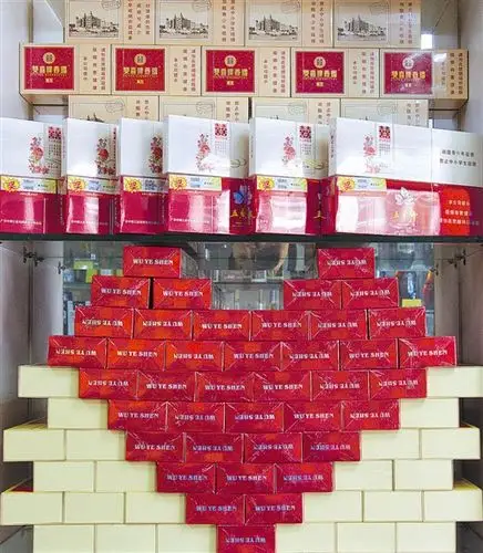 金色与红色包装的条烟搭配陈列,突出了喜庆文化. 陈宇摄