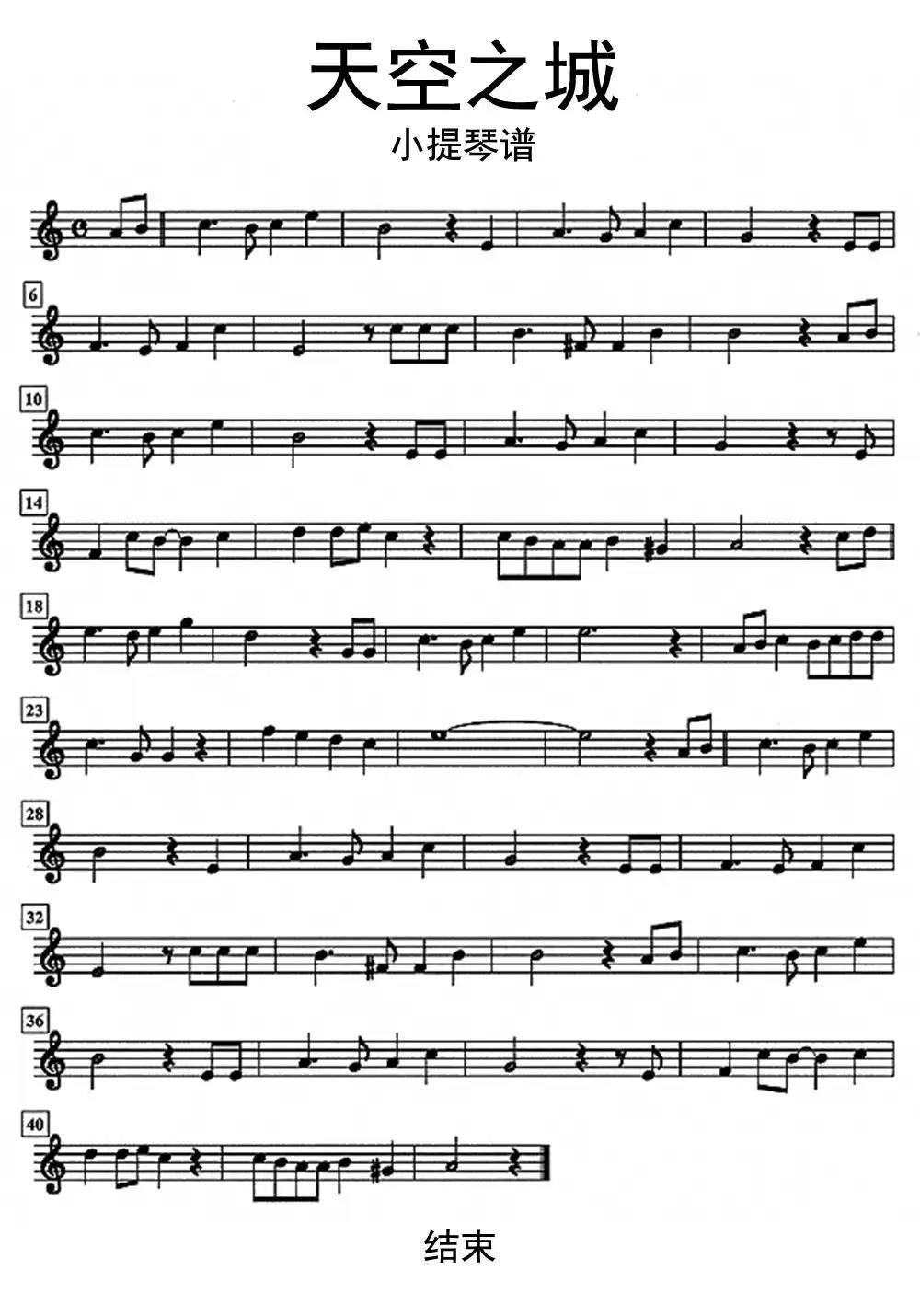 天空之城-小提琴谱 五线谱 c调乐谱 高清1页送示范音频