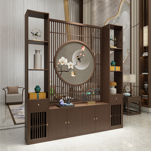 聚沁源新中式玄关柜实木入户进门玄关隔断屏风客厅餐厅隔断现代中式