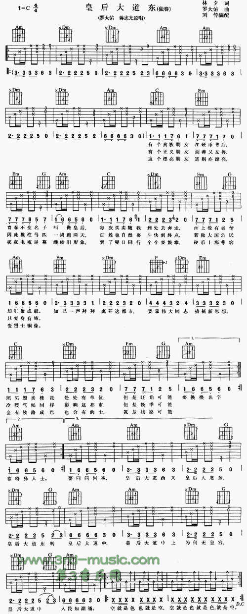 吉他曲谱 皇后大道东下载简谱下载五线谱下载曲谱网曲谱大全中国曲谱