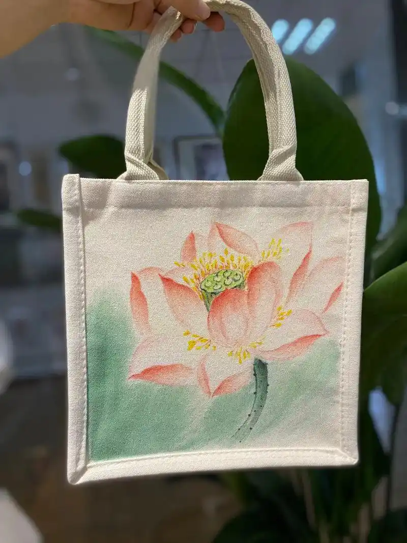 麻布包手绘 #手工diy #麻布袋diy #荷花 - 抖音