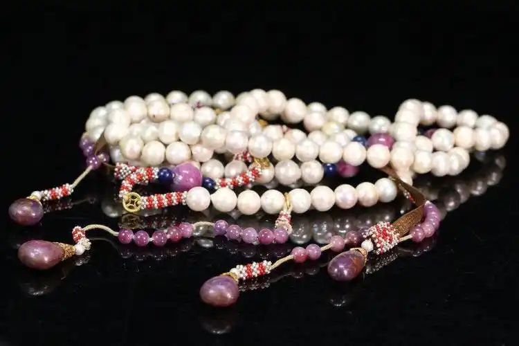 清代老珍珠朝珠尺寸:直径16mm,长126克
