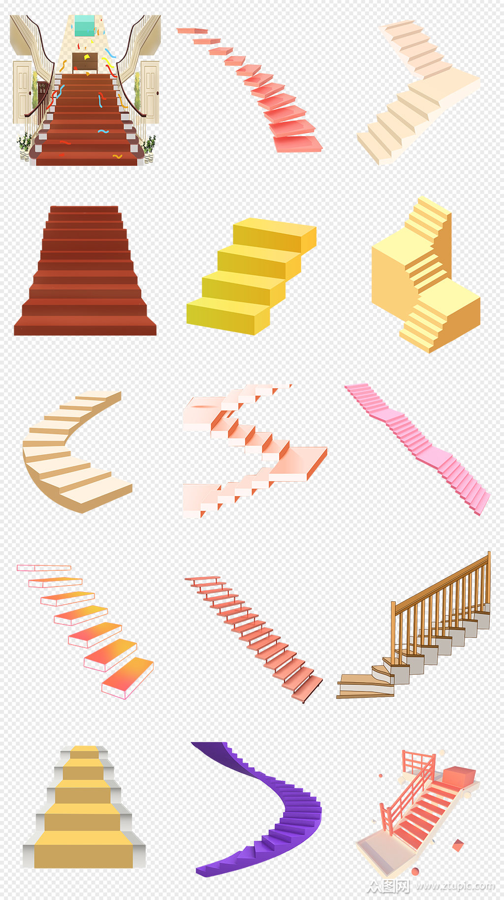 台阶矢量png素材透明免抠图片卡通手绘