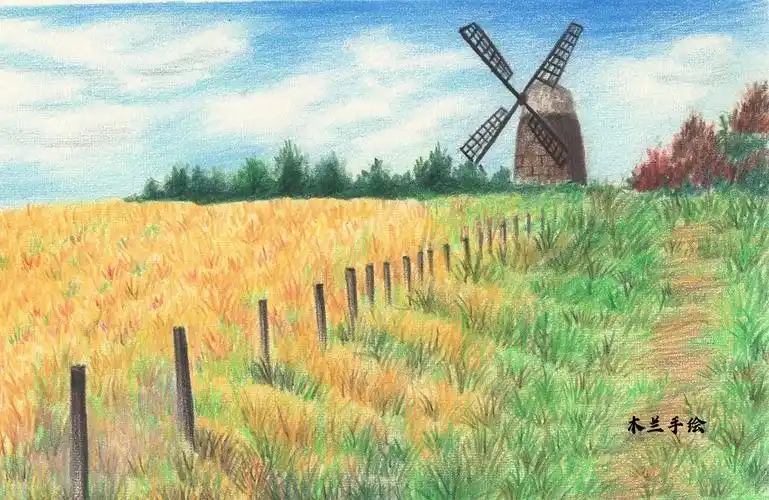 彩铅风景07—风吹麦浪
