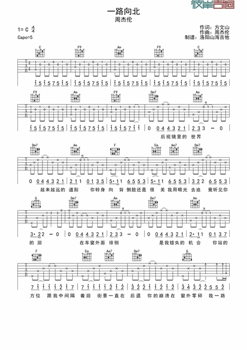 周杰伦《一路向北》吉他谱-c调原版吉他弹唱谱