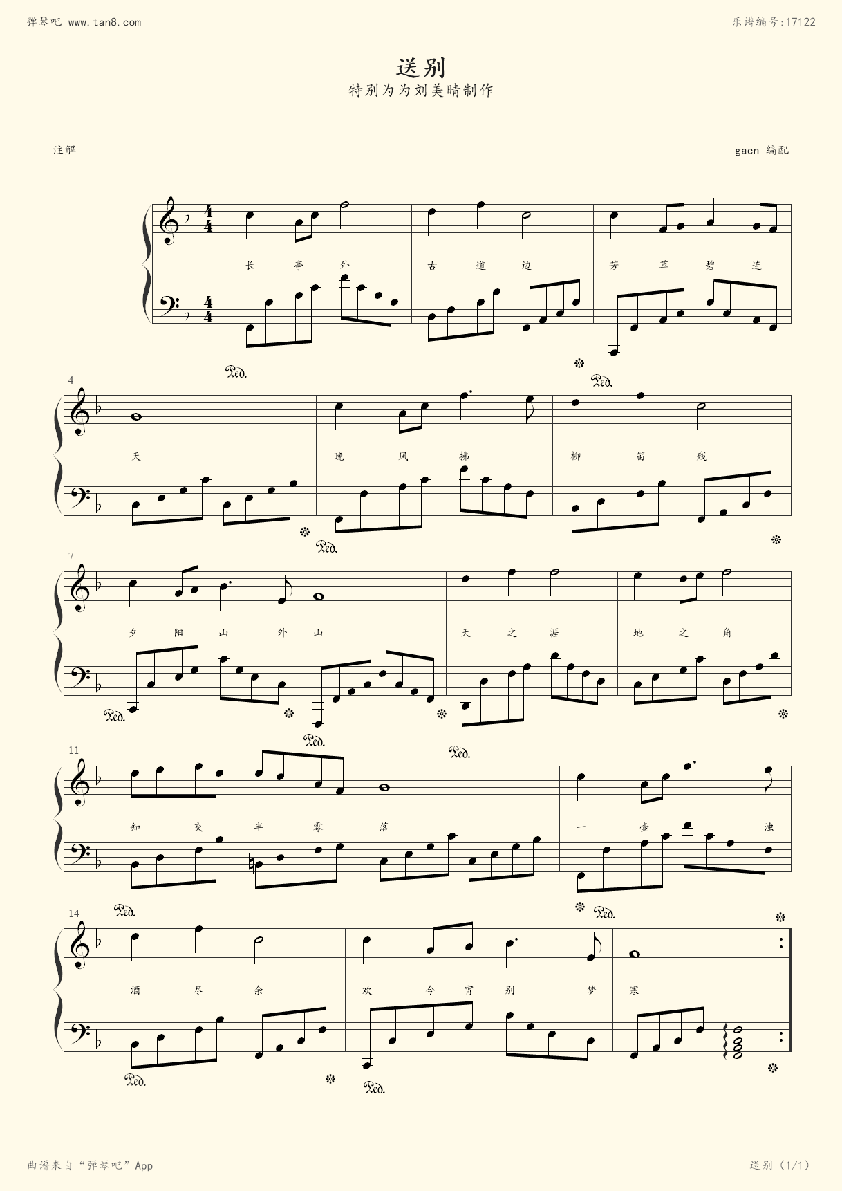 求送别的五线谱就是长亭外古道边的那个