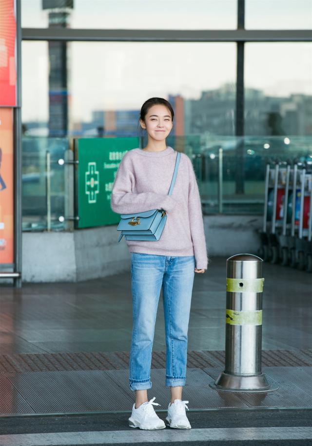 张佳宁机场look清纯灵动示范甜系少女穿搭指南