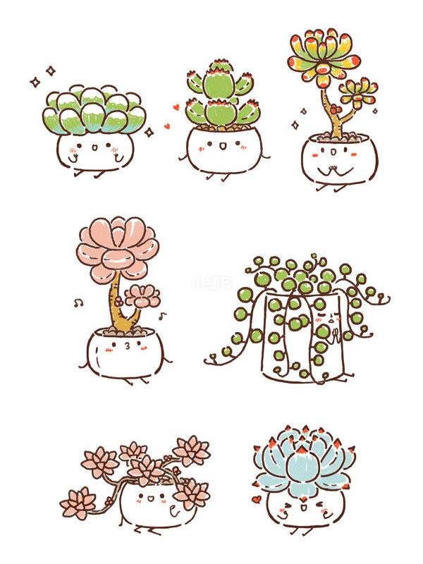 【18个超萌多肉植物简笔画】盛夏时节 来画组清新可爱的多肉盆栽简笔