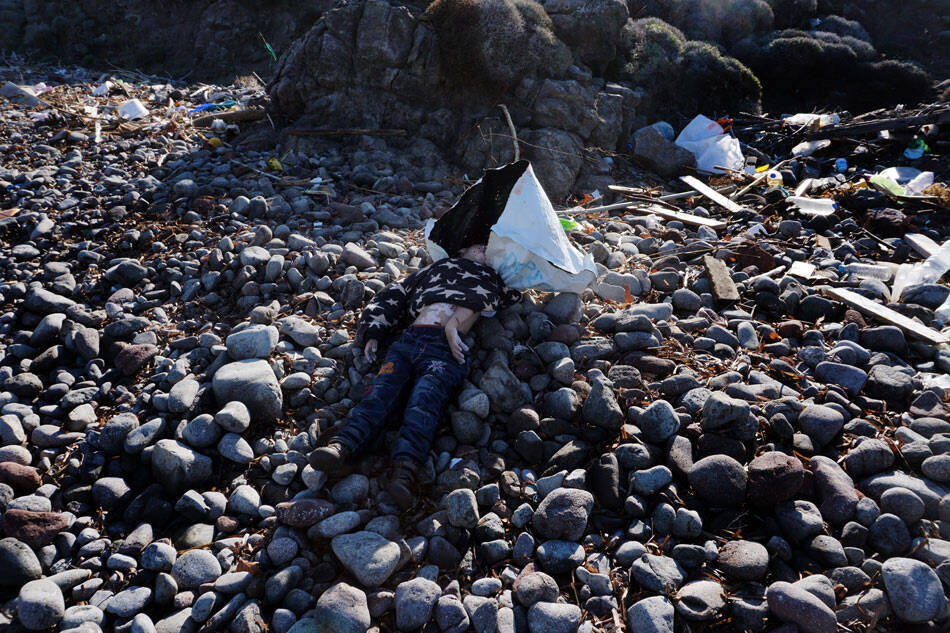 30日的难民船倾覆事故中的一具幼儿遗体