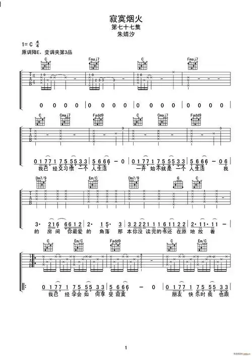 寂寞烟火(简和谱) 提示:按f11切换浏览器全屏模式.