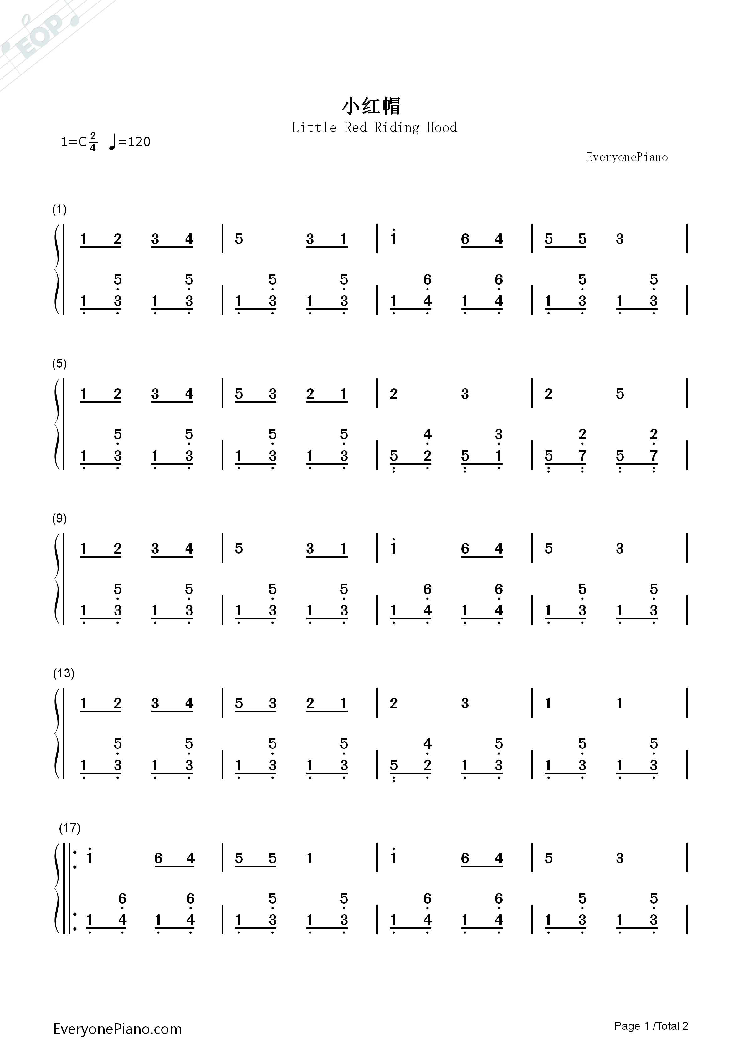 小红帽_简谱_搜谱网