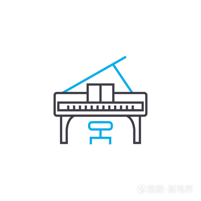 演奏钢琴线形图标的概念演奏钢琴线矢量符号符号插图