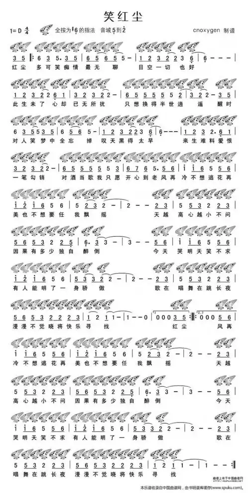 笑红尘 十二孔 乐器谱 笛子谱,陶笛谱 简谱