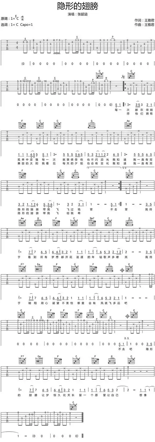 许嵩《素颜》吉他谱_变调夹四品采用g调和弦指法_高清六线图片谱_吉他