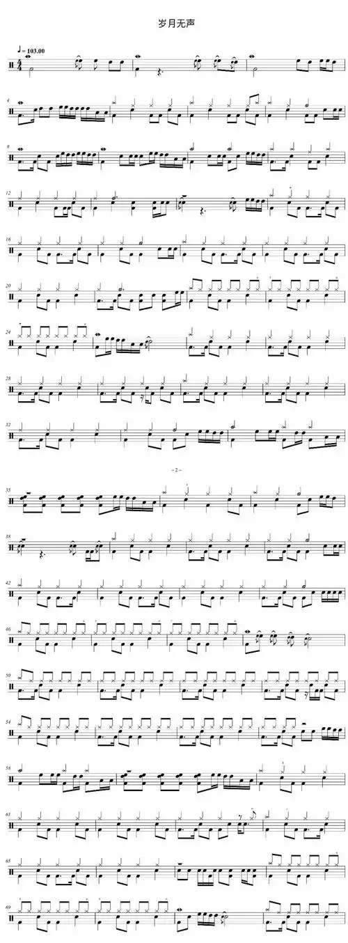 岁月无声鼓谱_岁月无声架子鼓谱无鼓伴奏_beyond-椰壳鼓谱网