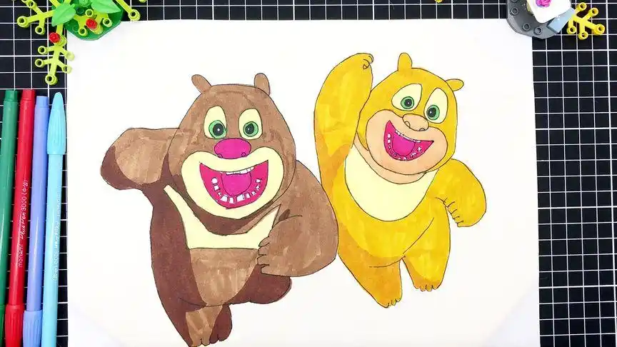熊大和熊二简笔画贴贴,兄弟俩终于团聚啦#伴我熊芯 #熊出没 - 抖音