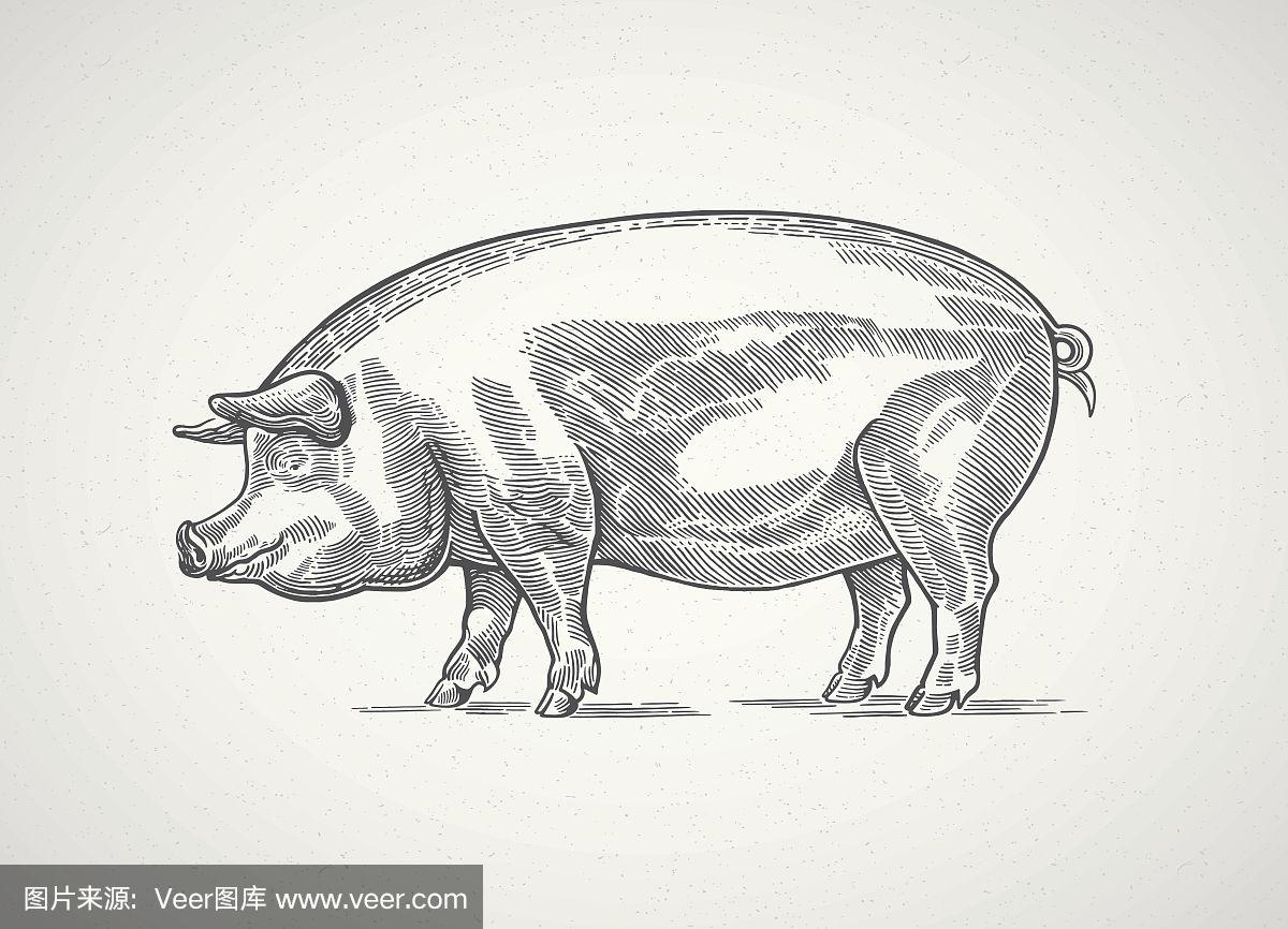 手绘小猪.素描矢量图照片