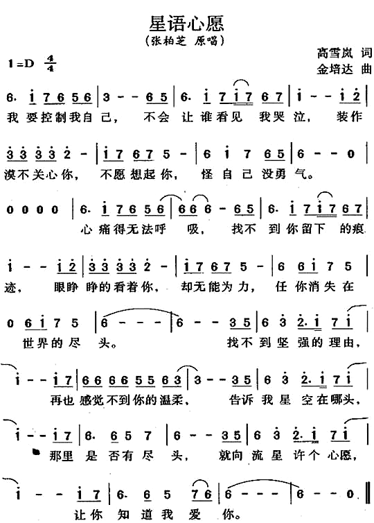 任贤齐《小雪》简谱g调简单音独奏谱