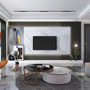 岩板悬空背景墙客厅装修轻奢简约风格
