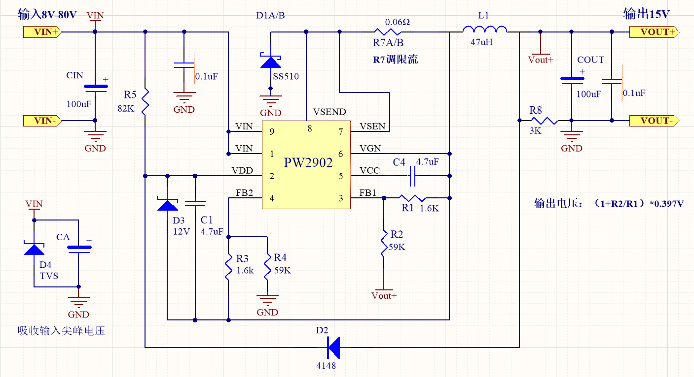 48v转12v电源芯片48v转15v电源芯片电路图