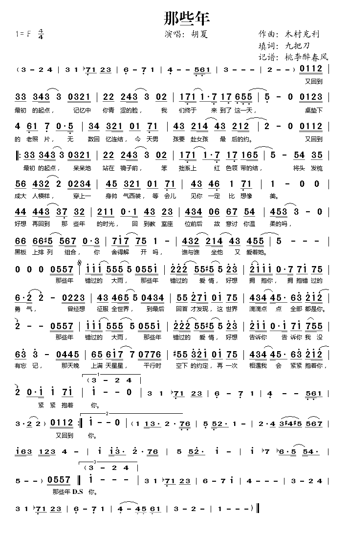 那些年简谱 胡夏演唱2