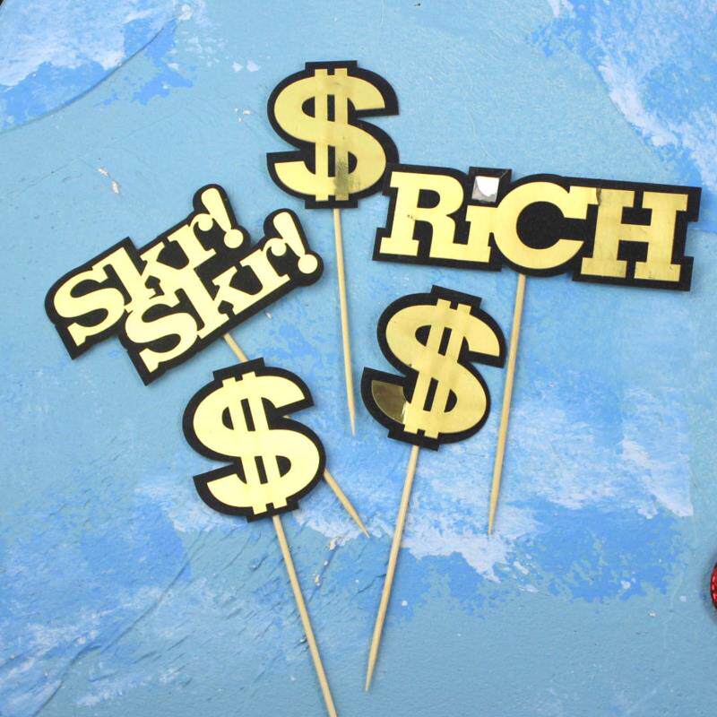钱美元s造型标志蛋糕装饰插件skr金钱符号生日甜品台烘焙暴富插旗