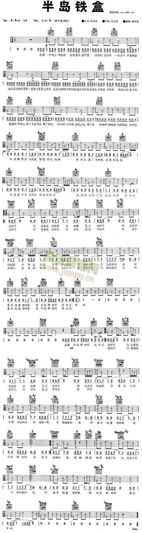 半岛铁盒吉他谱-周杰伦_吉他谱_乐队网-分享乐队总谱,吉他谱,简谱