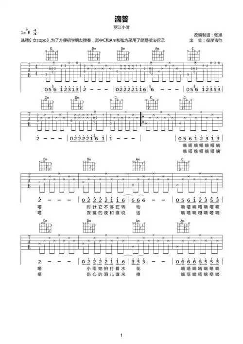 滴答滴吉他谱-1