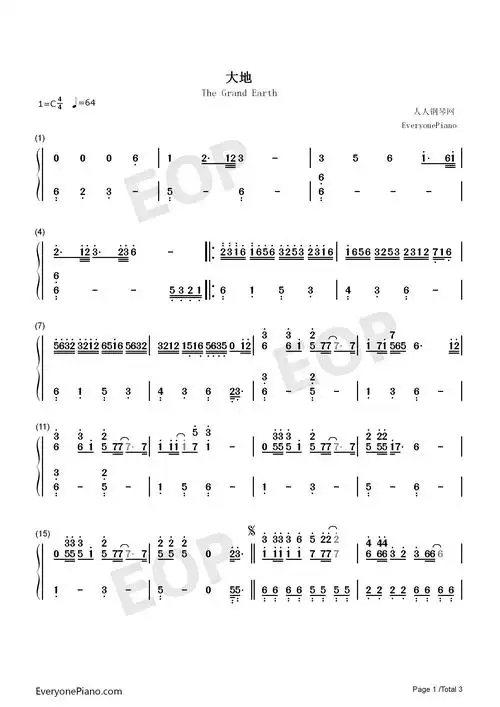 大地-beyond乐队双手简谱预览1