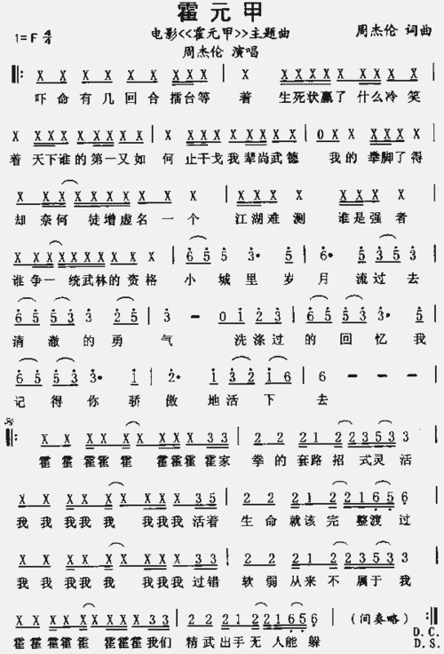 霍元甲简谱(歌词)-周杰伦演唱-谱友迪兰特上传2