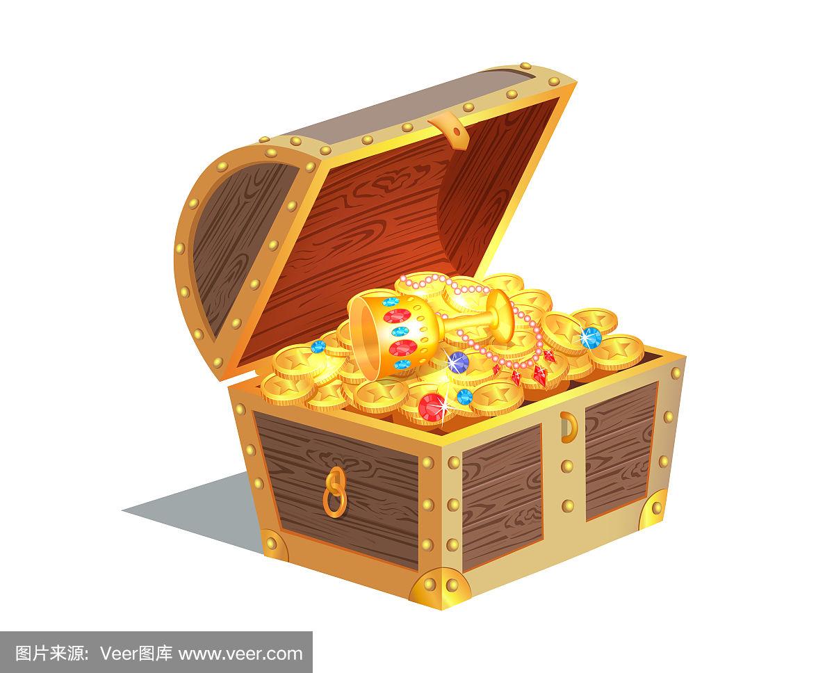 宝箱满珠宝,卡通矢量插图