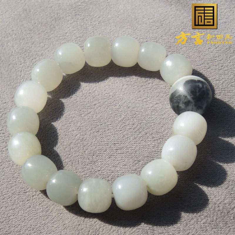 方言烟紫玉12mm老型珠配黑白分明含有透闪石成分聚宝盆特色手链r