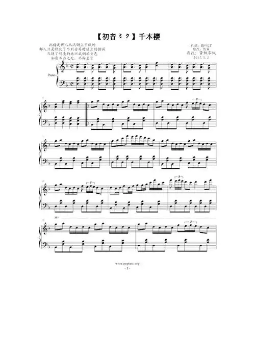 千本樱慢速版钢琴谱初音ミクf调流行钢琴简谱