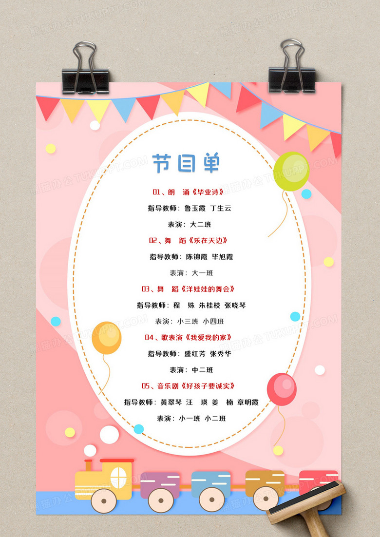 粉色可爱放飞童年学校六一校庆节目单word模板下载_熊猫办公