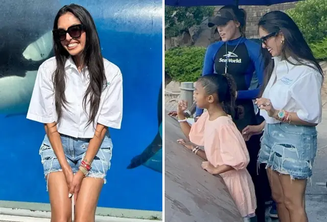 瓦妮莎晒近照,穿火辣短裤现身水族馆,身材抢镜成亮点_照片_马龙_女儿
