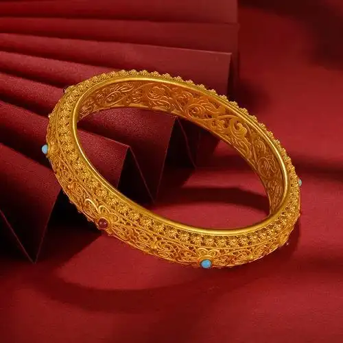 老庙黄金足金车花满天星可调节黄金手镯女黄金色2679g