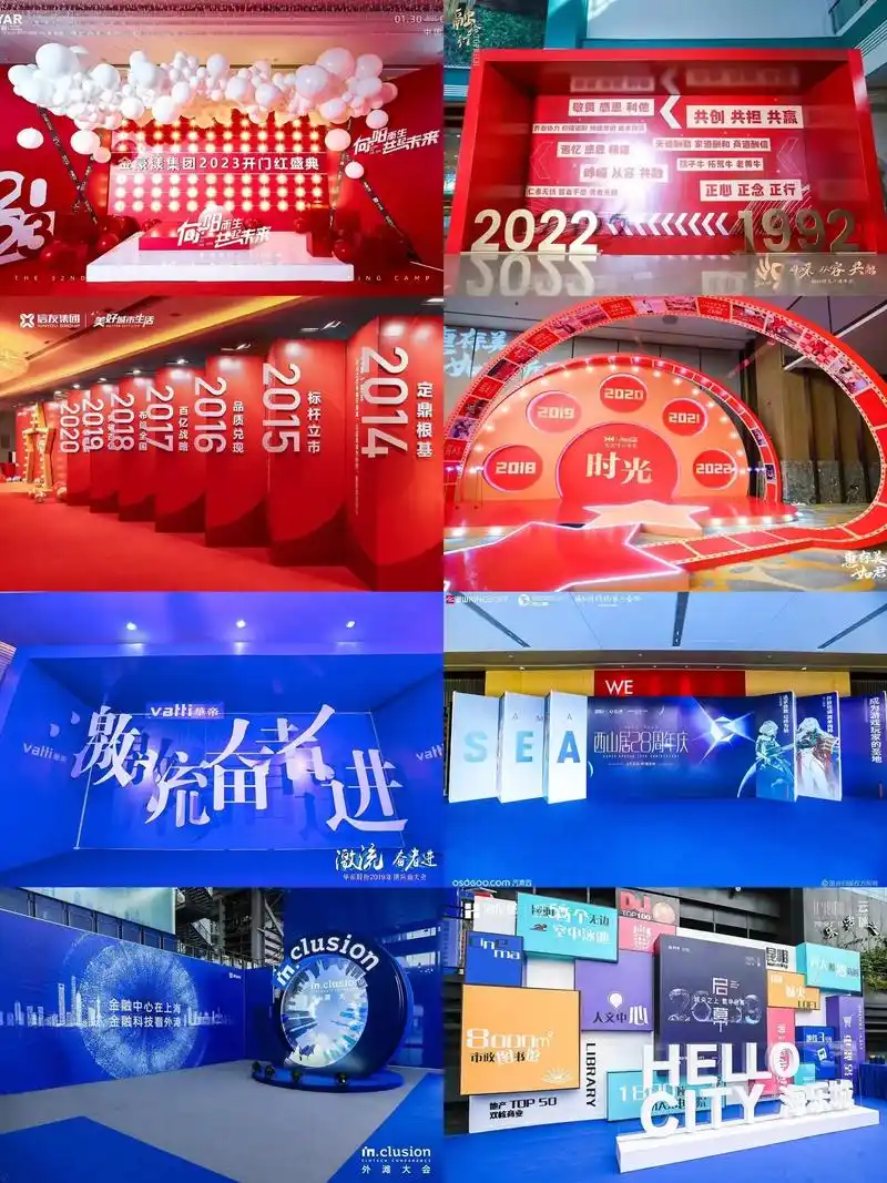 将企业的文化价值观,产品信息,活动主题字眼镶嵌在合影墙内,一般适用