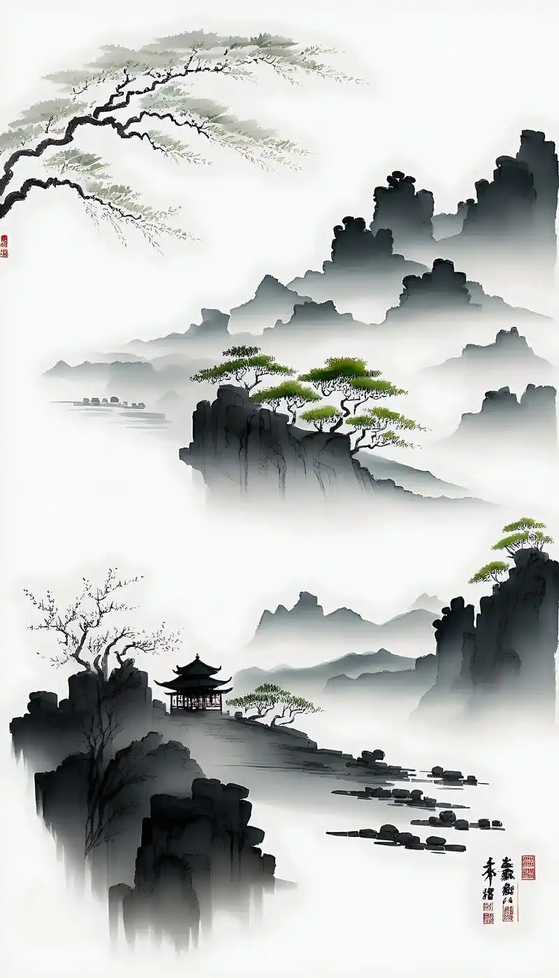 中国风,山水画,山清水秀,水墨丹青#ai绘画 #kk画廊 # - 抖音