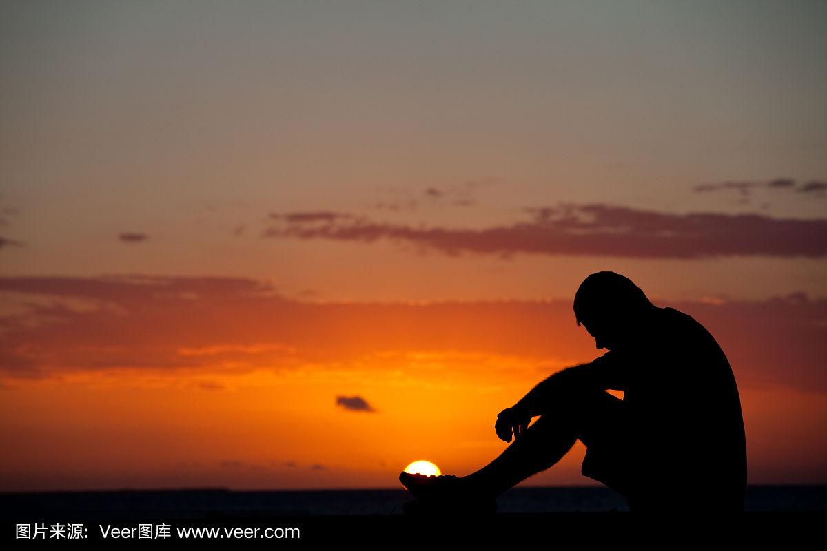 一个沉思中的男人的剪影