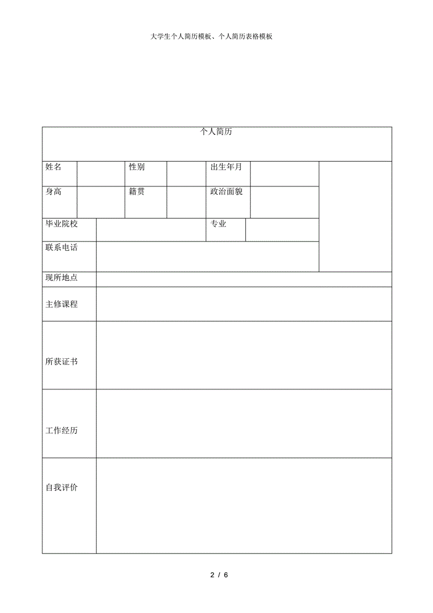 大学生个人简历模板个人简历表格模板.pdf 6页