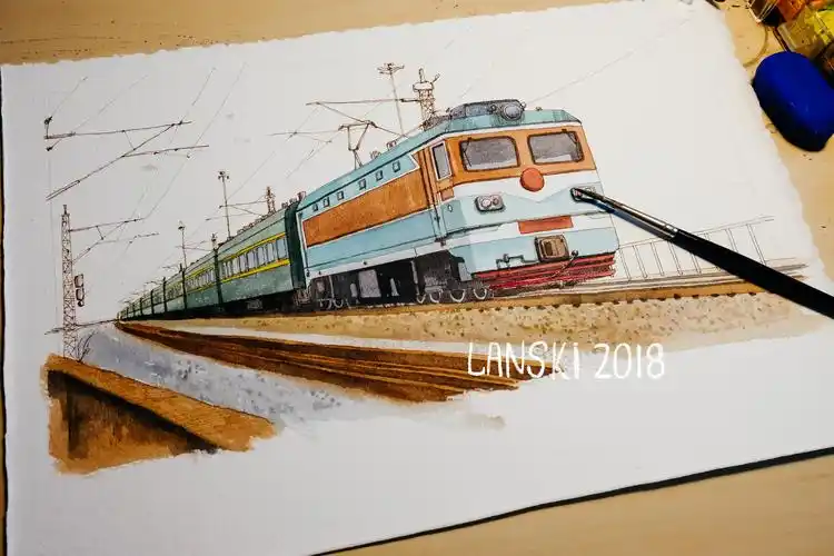 绿皮火车水彩_lanskiplanet-站酷zcool