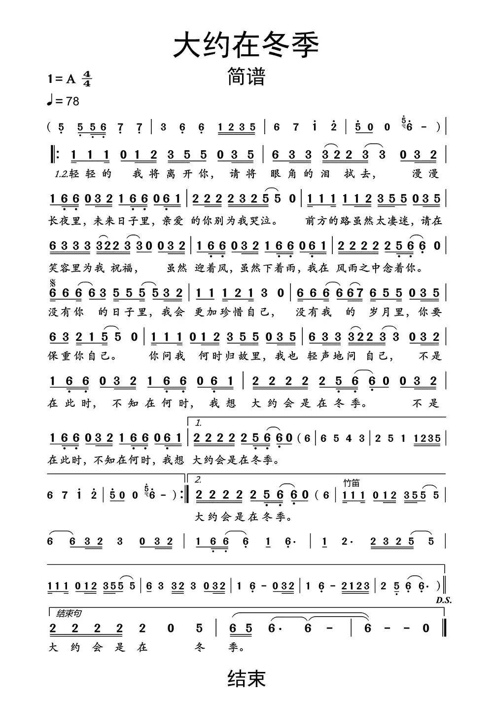 大约在冬季_歌谱简谱_哆来咪123曲谱网