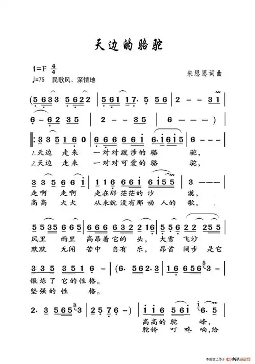天边的骆驼(大字老人适用)_简谱_搜谱网