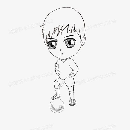 q版人物卡通可爱呆萌大眼奔跑手绘简易踢球铅笔画男孩男生运动简笔画
