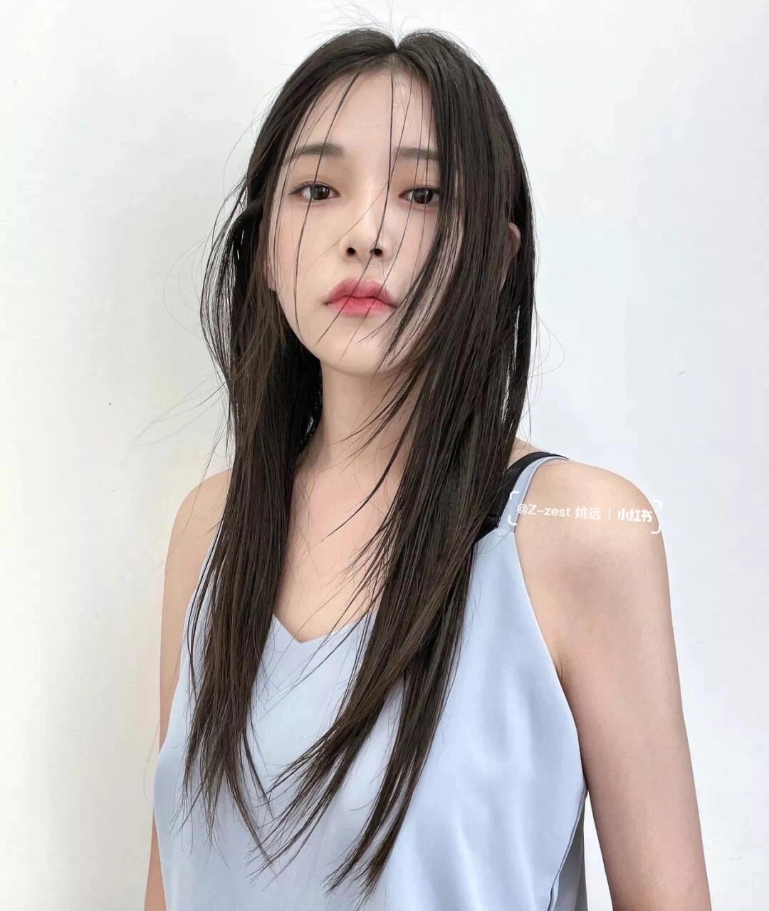 外层的头发稍微剪裁出层次,整体直发显得发量多不少,柔和自然又好看.