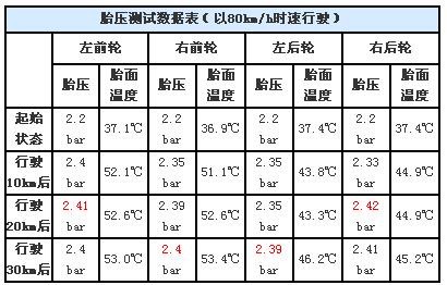轮胎气压与符合对照表