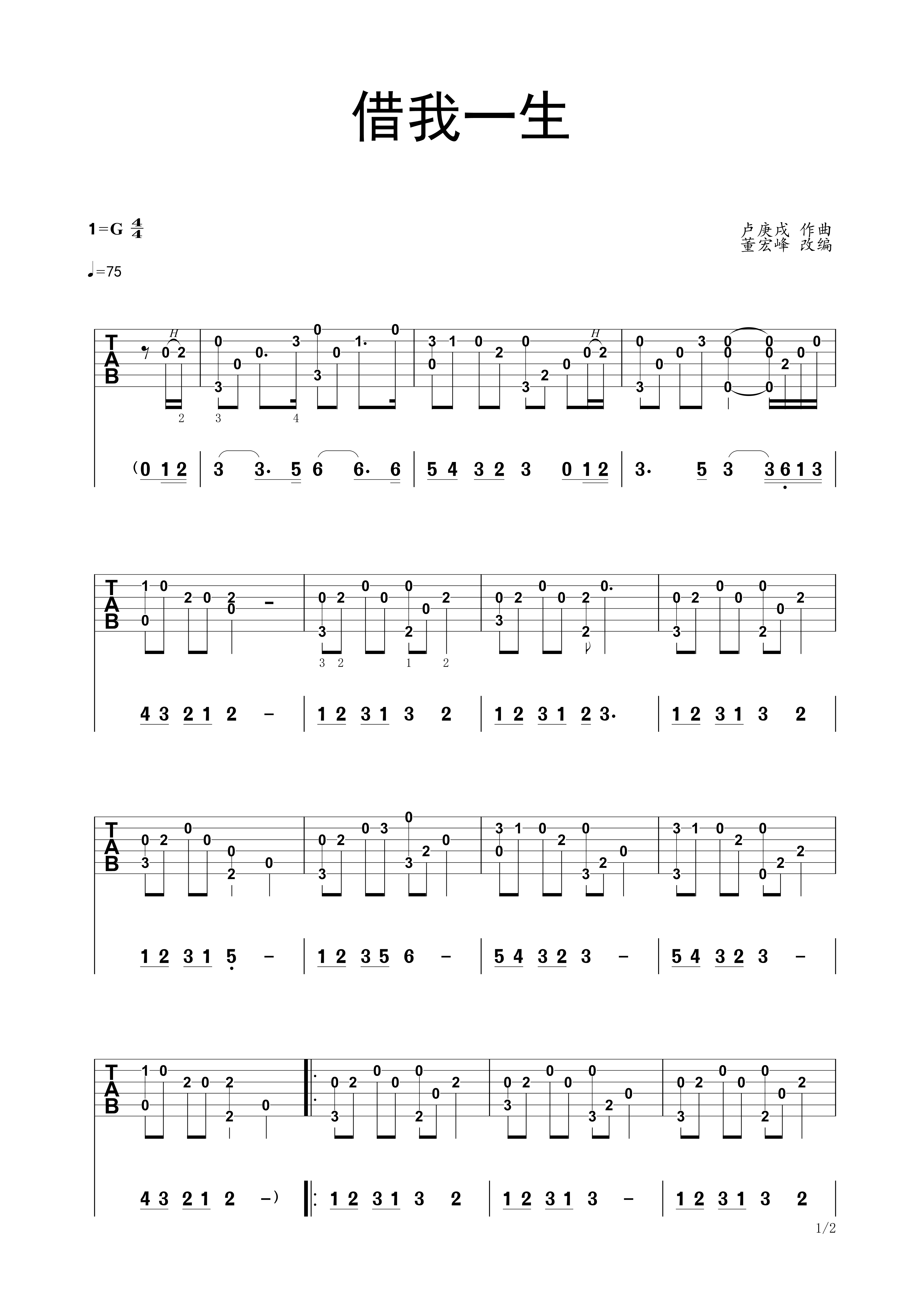借我一生指弹吉他独奏谱水木年华