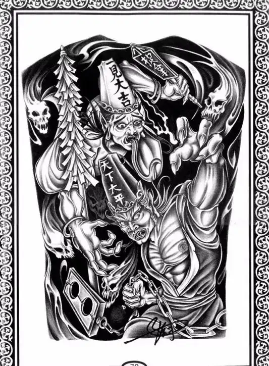 黑白无常 满背_纹身图案手稿图片_郭鑫的纹身作品集