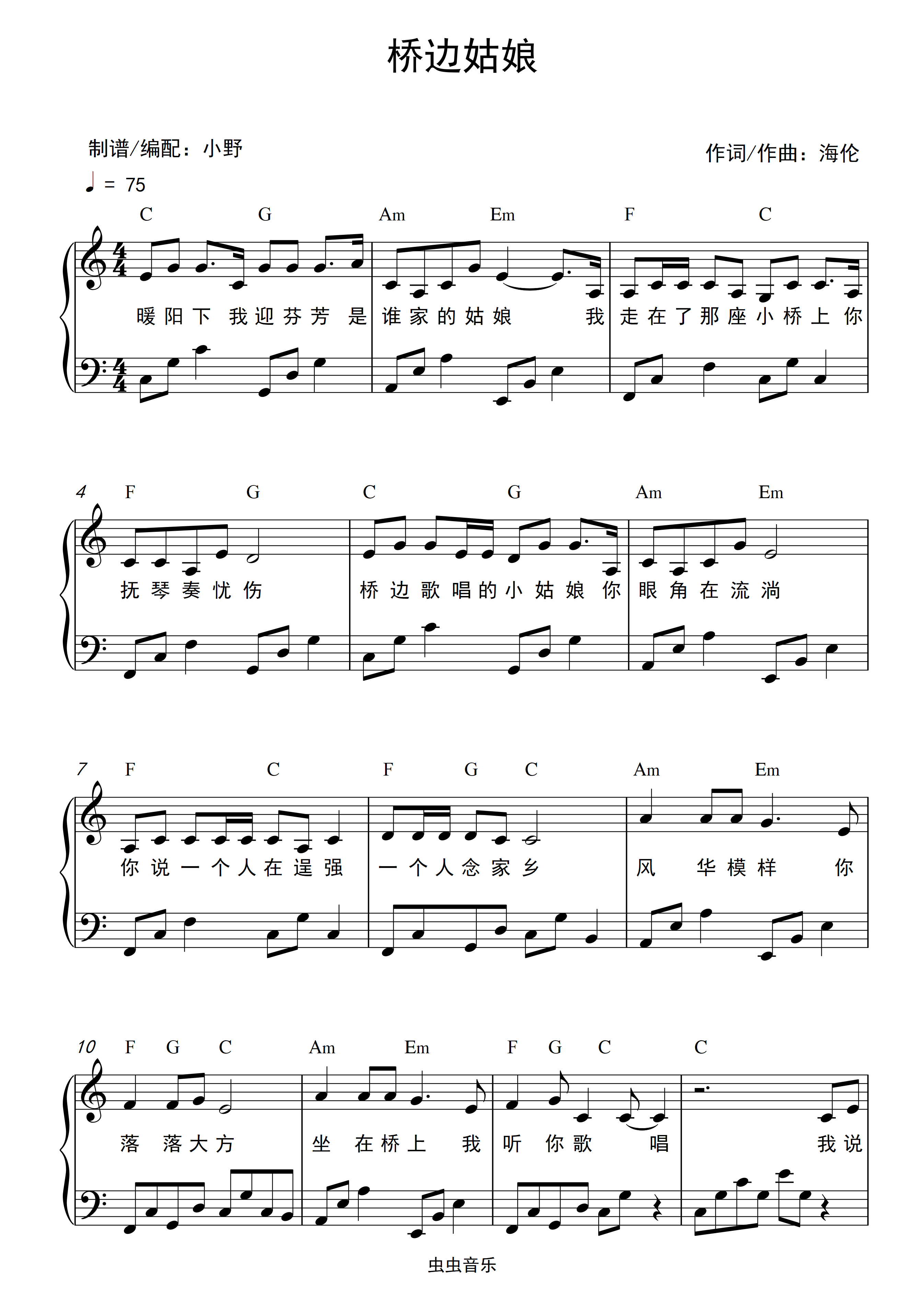 桥边姑娘钢琴谱-c调-虫虫钢琴